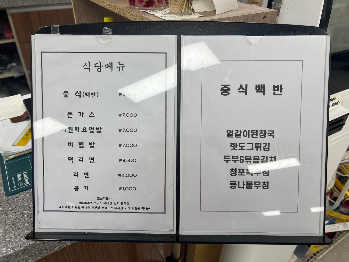 아래는 카운터 앞에 있는 식당 메뉴판입니다 : )