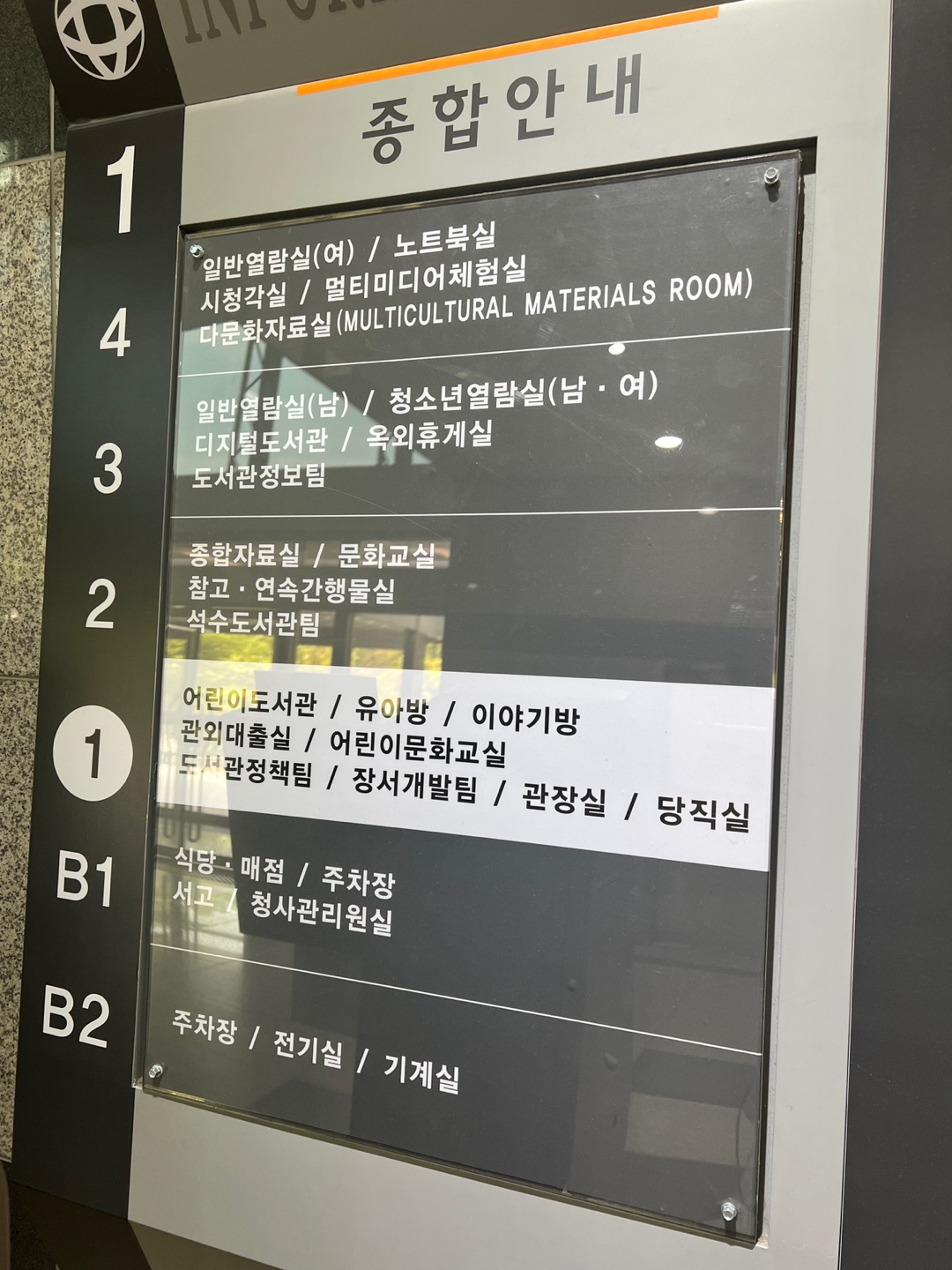 층별 안내도를 보면 열람실도 있고 휴게실도 있고 다양한 실들이 있는데 저는 대출해서 집에서 읽는 편이라