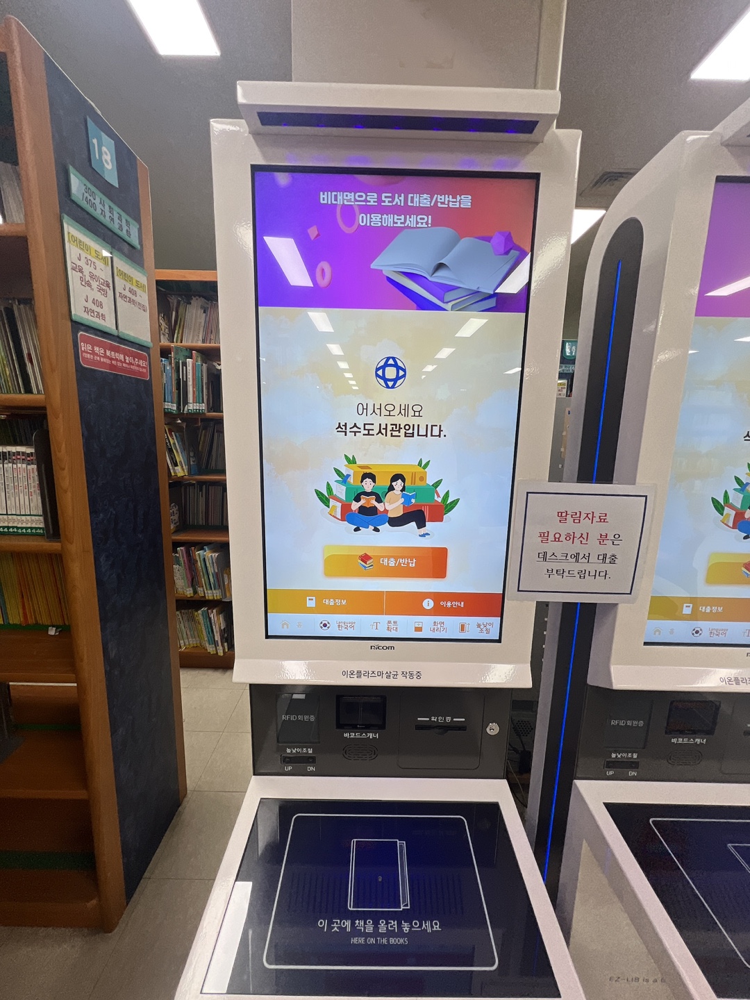 이렇게 비대면으로 대출과 반납을 할 수 있는 기계가 있어요.