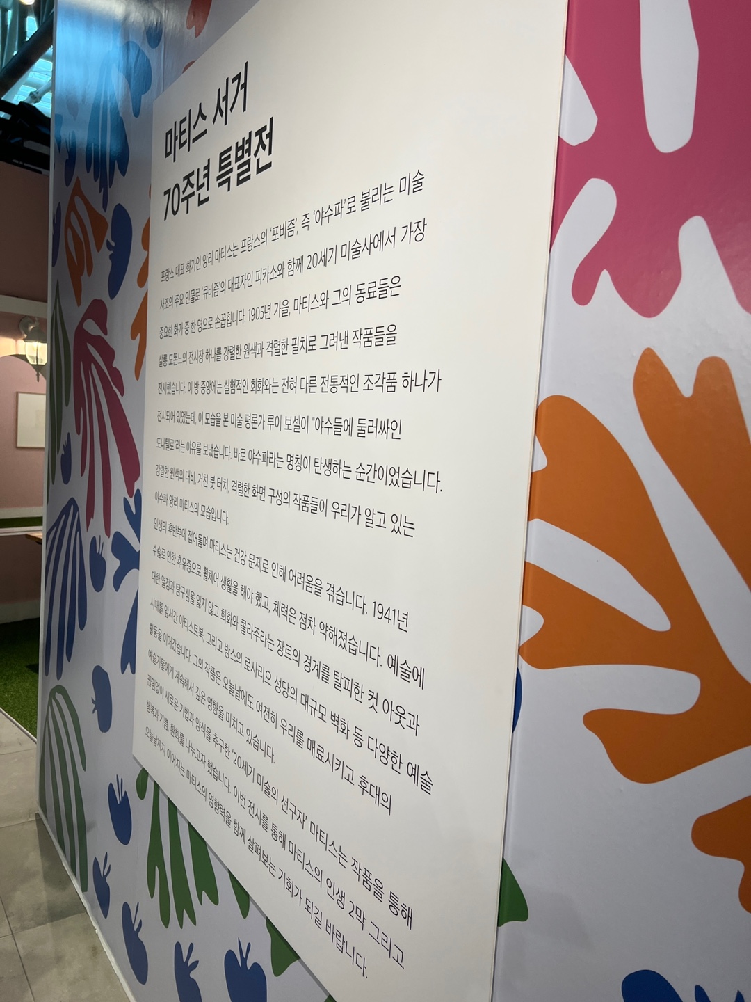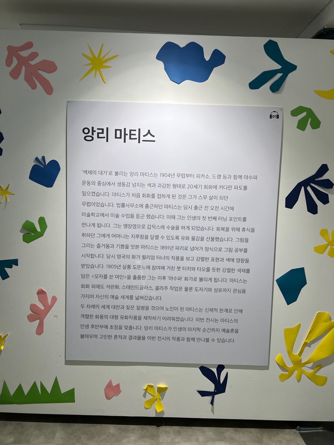 이렇게 입구에 들어가면 마티스에 대한 설명과 특별전 설명이 적혀있어요.