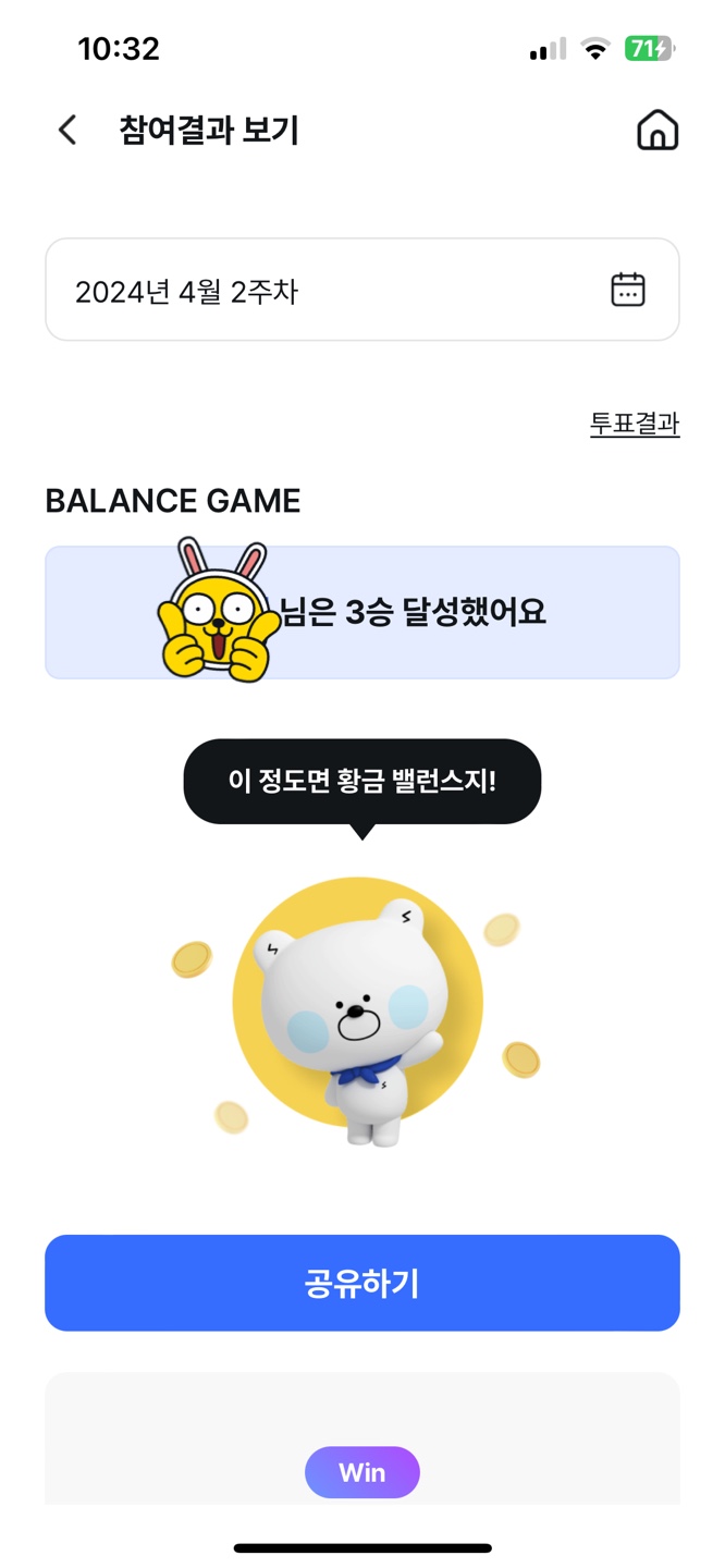 4월 2주 차를 선택하고 보았더니 3승을 달성했더라구요.