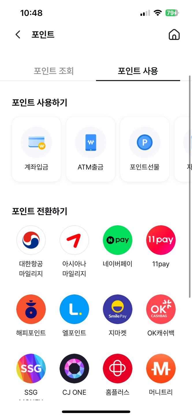 금액이 적은 포인트지만 신한포인트는 현금으로 통장으로 이체받을 수 있다는 점이 장점인 것 같습니다.