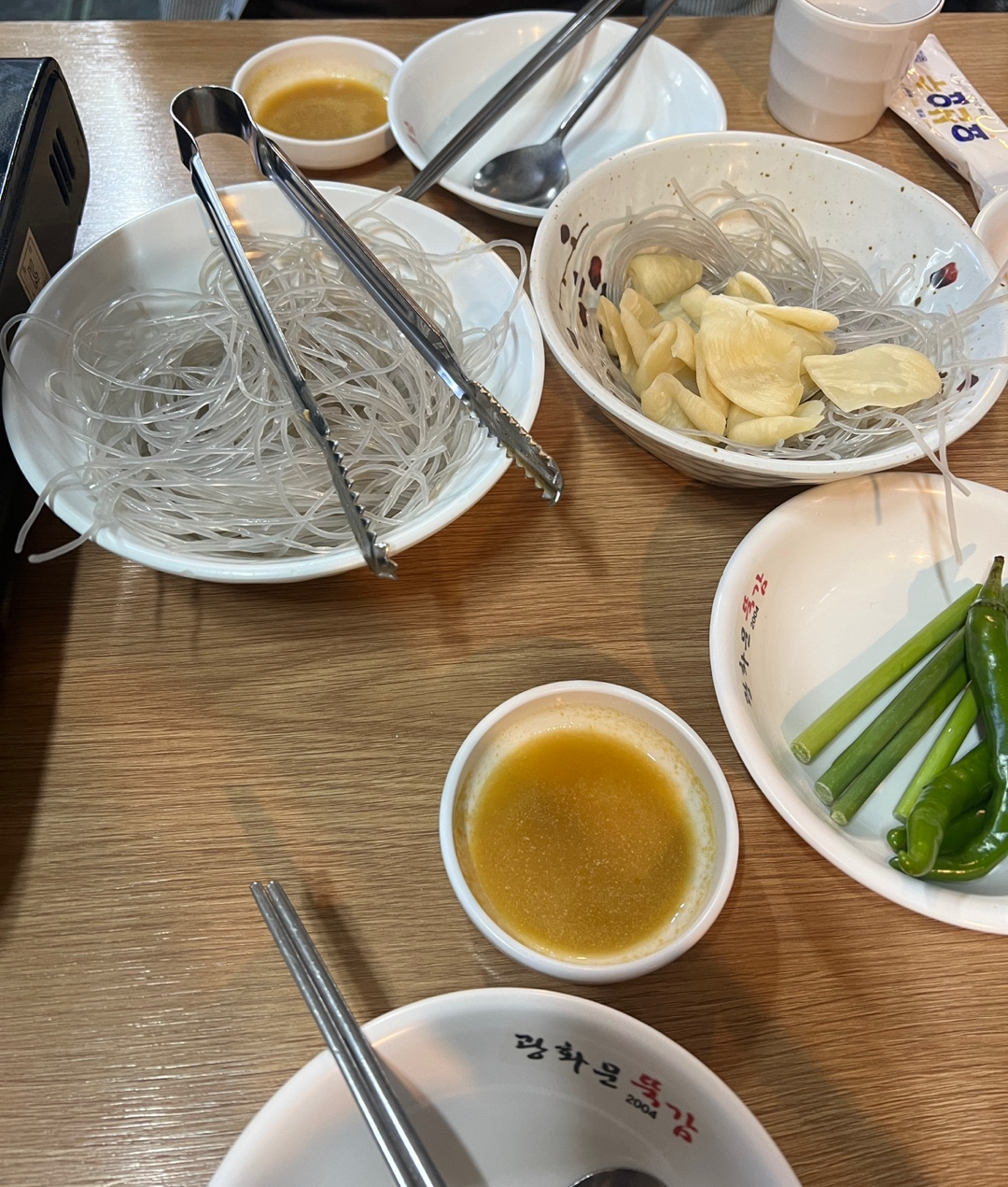 고기를 다 먹은 후 기본사리(수제비, 당면)와 추가 주문한 당면을 넣었어요.