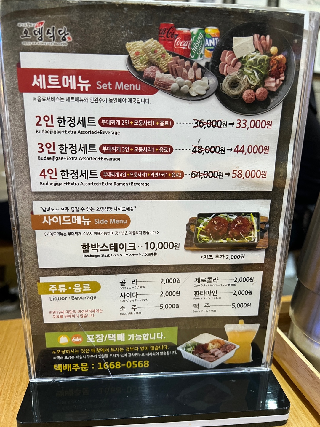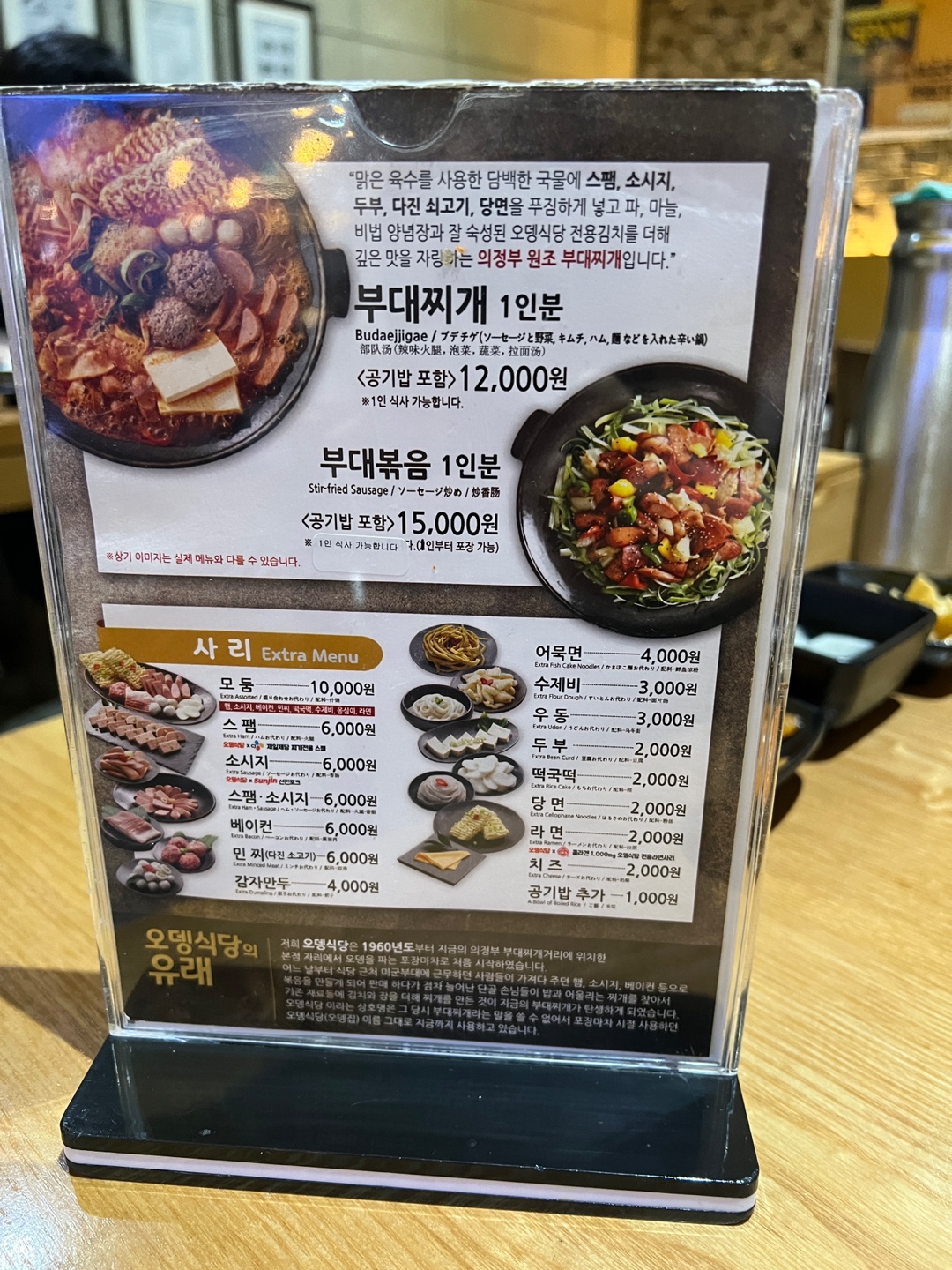 세트메뉴를 고민하다 그냥 부대찌개 2인분으로 결정~!!