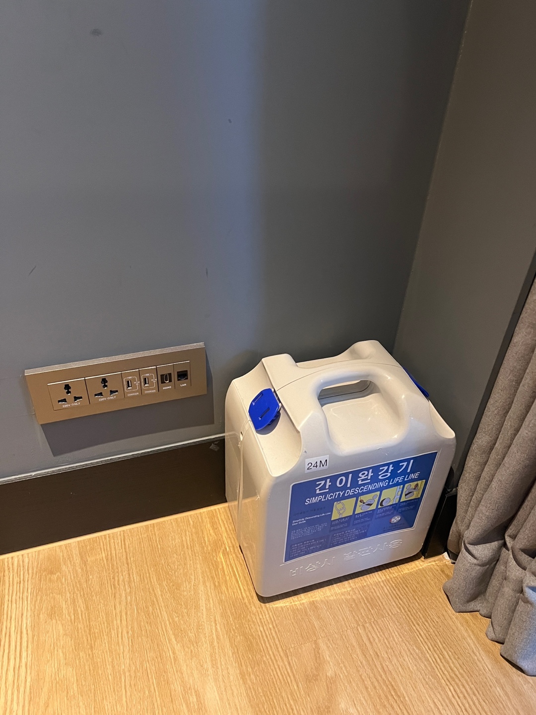 또 창쪽에 간이 완강기가 잘 보이게 배치되어 있어 그런지 조금 더 위험한 상황이 생기더라도