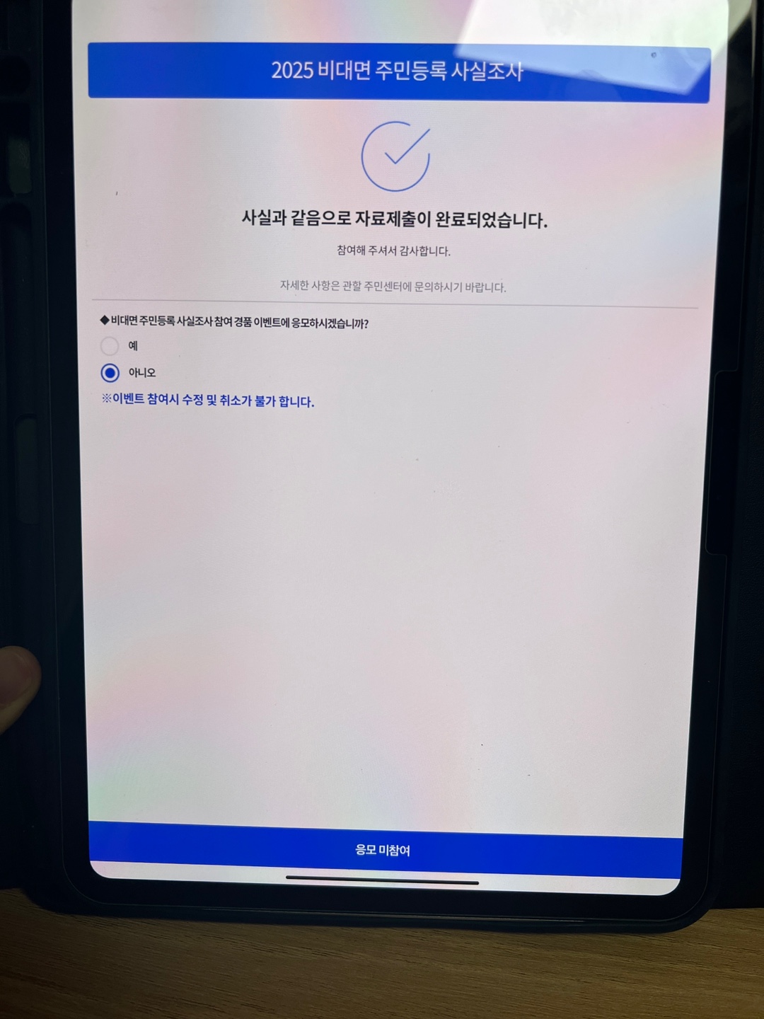| 정부24에서 비대면 조사를 마쳤나요? | ☐ |