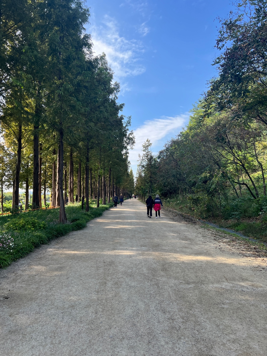 메타세콰이어 길 초입에는 나무가 많지 않아 햇볕이 좀 있는데 길 따라 조금만 가면 아래 사진처럼 나무가 많아 그림자 져서 시원하게 산책을 할 수 있더라구요.