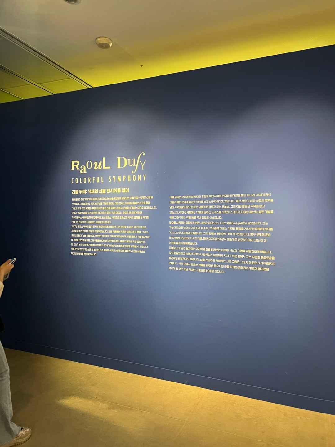 지하 1층으로 내려가면 라울 뒤피 전시를 하고 있다는 걸 바로 알 수 있는 이 노란색 벽이 있어요~!