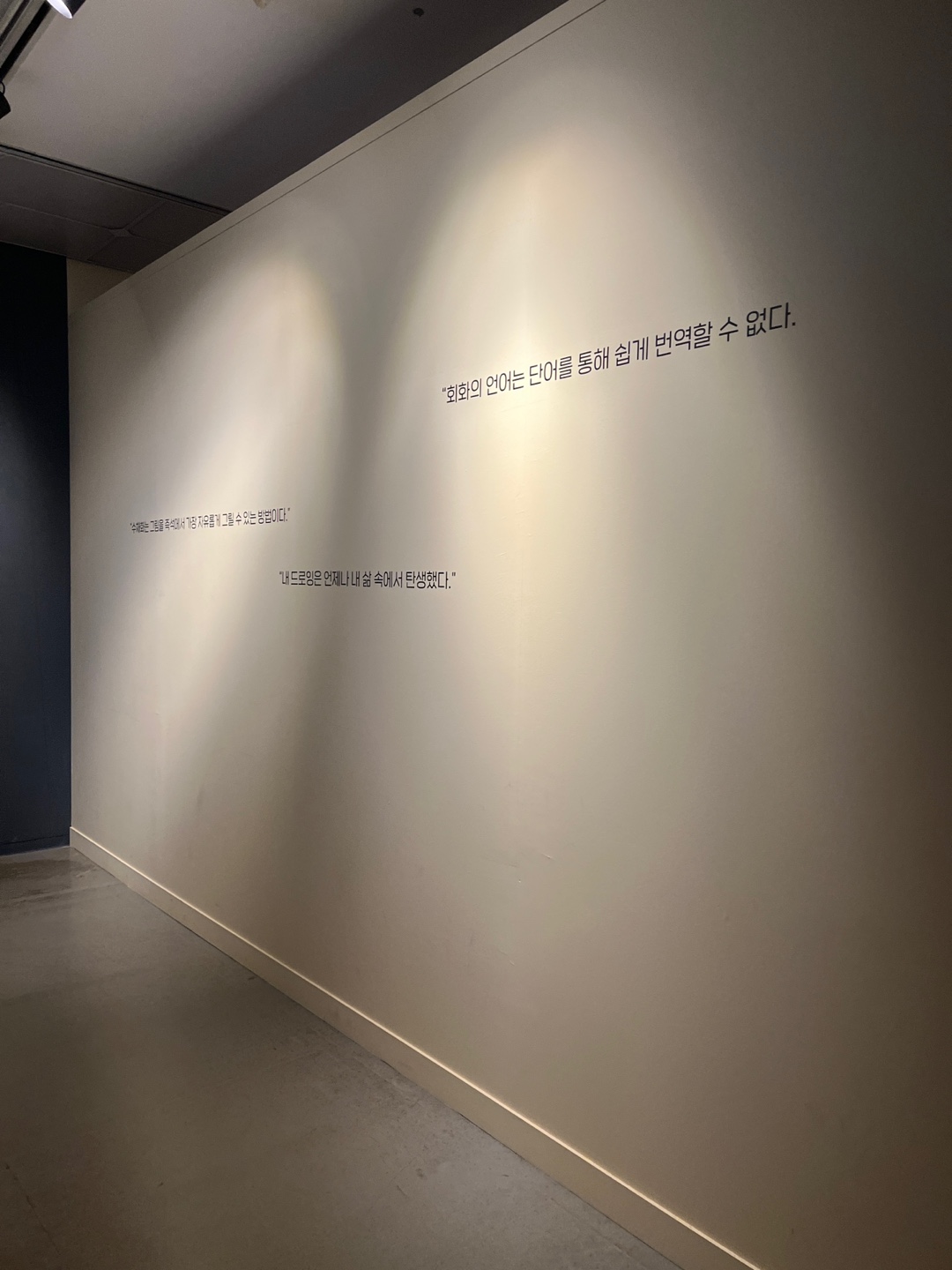 그래서 오디오 도슨트로 보긴했는데 도슨트 설명 들으면 전체 작품이랑 전시장 벽 모양의 의미도 알려준다고 지인에게 들었어서 기대하고 갔지만 도슨트 일정이 취소되어서 아쉬웠어요ㅠㅠ