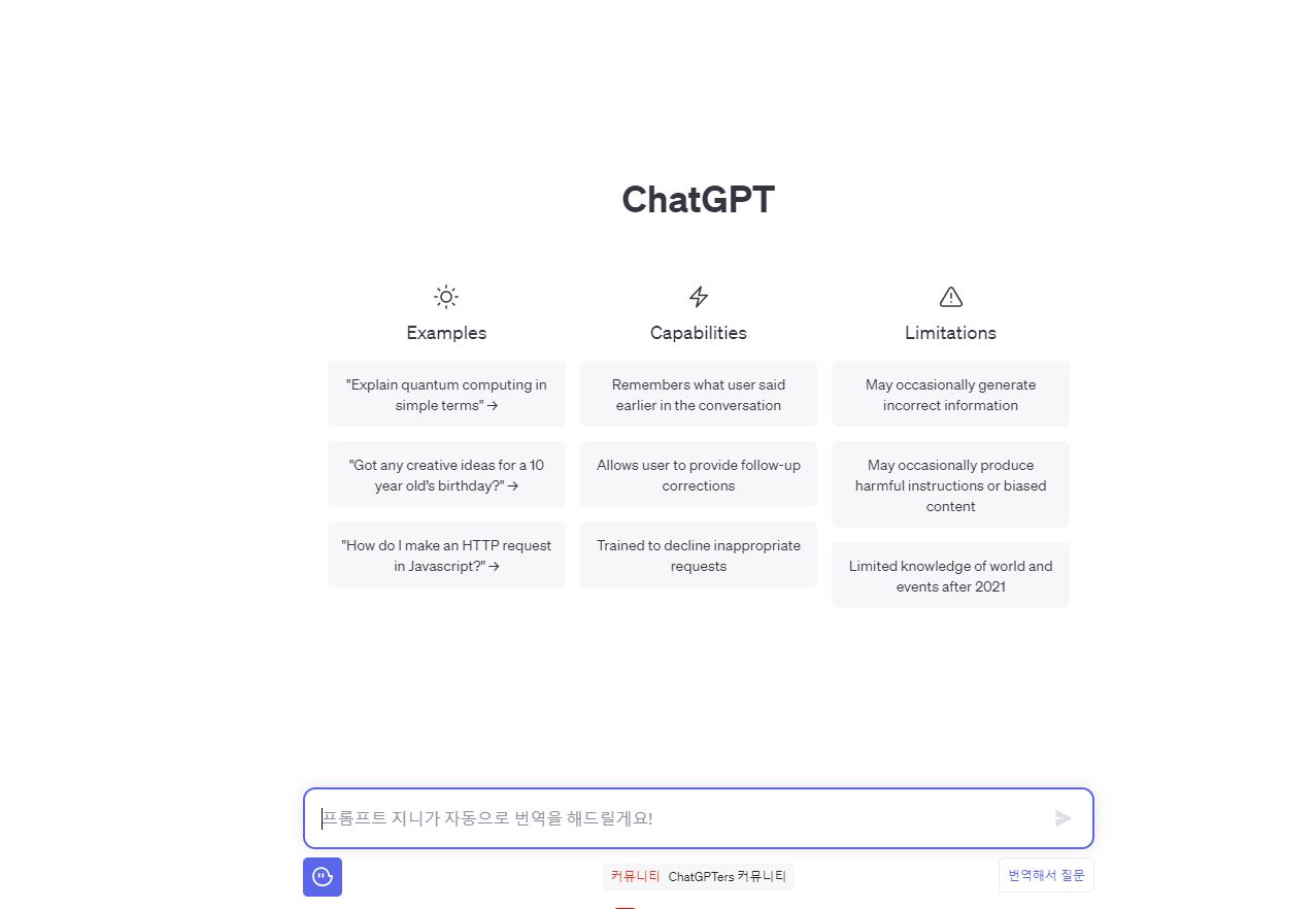 나는 확장 프로그램을 사용해서 한글로 질문을 하면 알아서 번역을 해서 질문하고 대답해 준다.